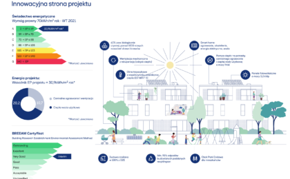 To pierwsze w Polsce osiedle certyfikowane prestiżowym systemem BREEAM. Budynki oraz infrastruktura zostały zaprojektowane ze szczególną dbałością o środowisko naturalne oraz wysoki komfort życia mieszkańców. Do budowy użyto antyalergicznych materiałów, zastosowano system zmiękczający wodę i energooszczędne oświetlenie. Każde mieszkanie jest dwustronne i wyposażone w balkon lub loggię oraz wysokie, panoramiczne okna. Na osiedlu znajdują się: punkt naprawy i mycia rowerów, plac zabaw, ogrody w kształcie labiryntów, zachowano również starodrzew.