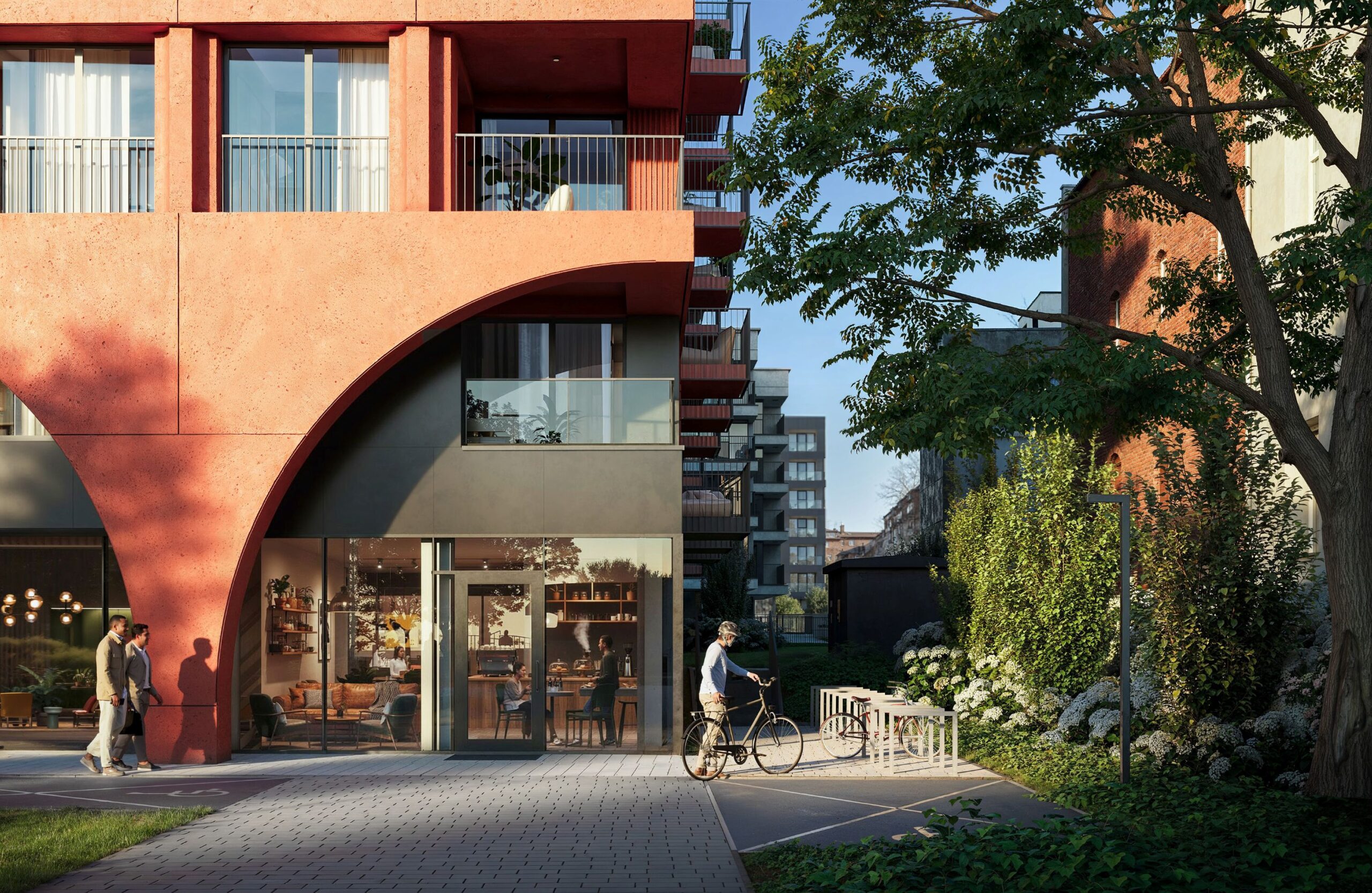 Mazowiecka 21 to nowa inwestycja mieszkaniowa, którą realizujemy w sercu krakowskiej Krowodrzy – dzielnicy, która od lat przyciąga swoją atmosferą, architekturą i miejskim stylem życia. Stworzyliśmy projekt zakorzeniony w śródmiejskim charakterze okolicy, ale utrzymany we współczesnym duchu. Rytm elewacji, pilastry, gzymsy i arkady nawiązują do modernistycznych kamienic i nadają inwestycji elegancki, ponadczasowy wyraz inspirowany historią miejsca.